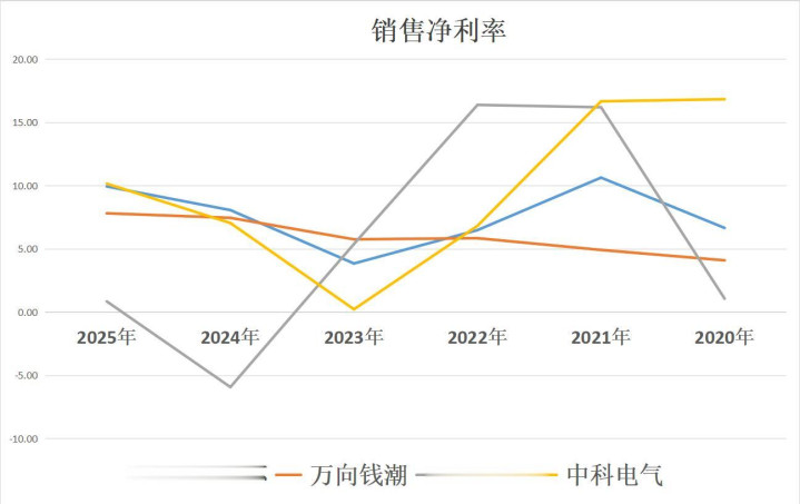 蔚蓝锂芯、万向钱潮两家的净利率在过去五年上升。